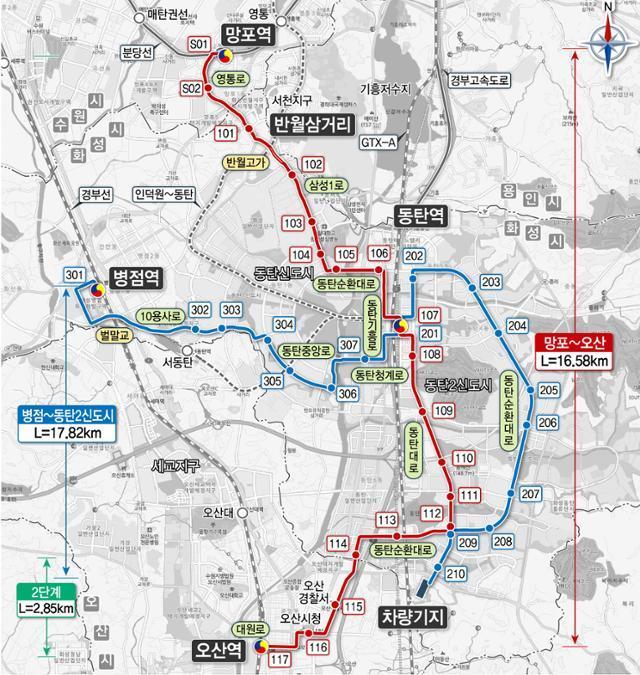 경기 화성시 '동탄트램' 노선도. 화성시 제공